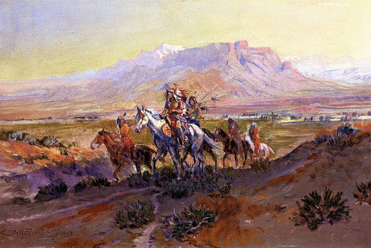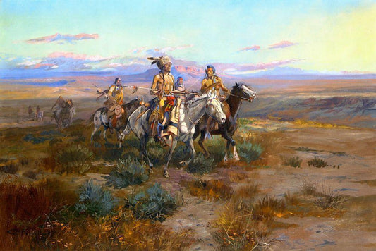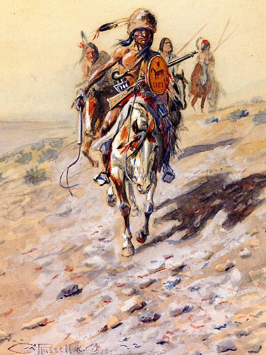 Seeking the Trail (detail) White Modern Wood Framed Art Print with Double Matting by Russell, Charles Marion
