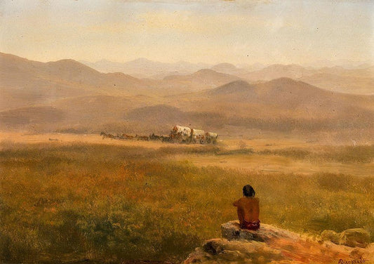 Oregon Trail White Modern Wood Framed Art Print with Double Matting by Bierstadt, Albert