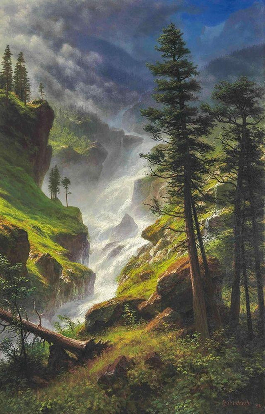 Rocky Mountain Waterfall White Modern Wood Framed Art Print with Double Matting by Bierstadt, Albert