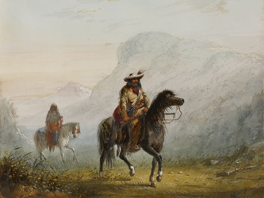 Trappers Starting for the Beaver Hunt White Modern Wood Framed Art Print with Double Matting by Miller, Alfred Jacob