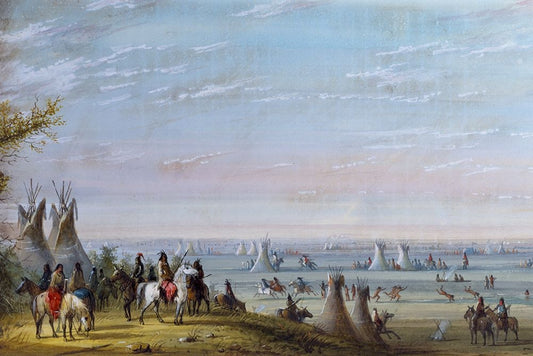 An Indian Camp White Modern Wood Framed Art Print with Double Matting by Miller, Alfred Jacob