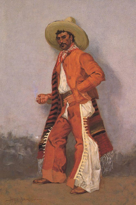 A Vaquero Red White Modern Wood Framed Art Print with Double Matting by Remington, Frederic