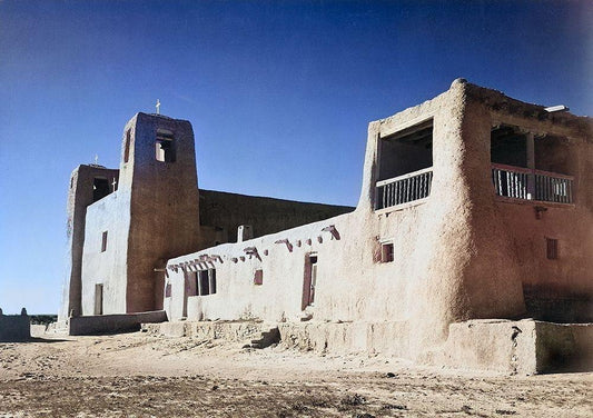 Front view of entrance-Church-Taos Pueblo National Historic Landmark Color White Modern Wood Framed Art Print with Double Matting by Adams, Ansel