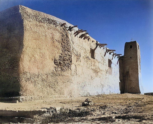 Church Side Wall and Tower-Acoma Pueblo-New Mexico Color White Modern Wood Framed Art Print with Double Matting by Adams, Ansel