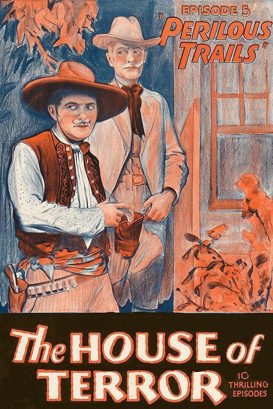 Vintage Westerns: Perilous Trails - House of Terror White Modern Wood Framed Art Print with Double Matting by Unknown