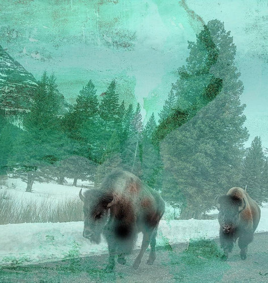 Colored Bison White Modern Wood Framed Art Print with Double Matting by Phillip, Jamie