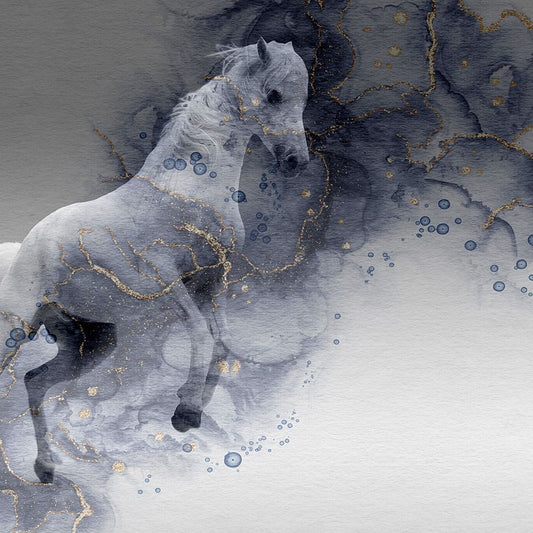 Misty Horse White Modern Wood Framed Art Print with Double Matting by