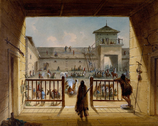 Interior of Fort Laramie White Modern Wood Framed Art Print with Double Matting by Miller, Alfred Jacob