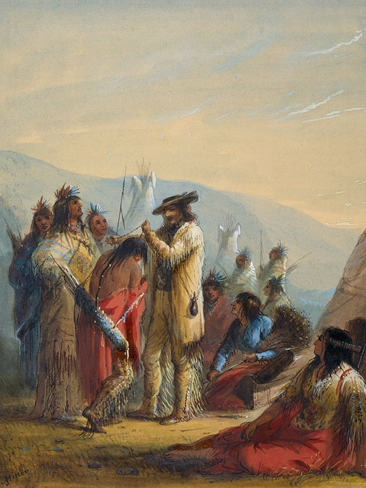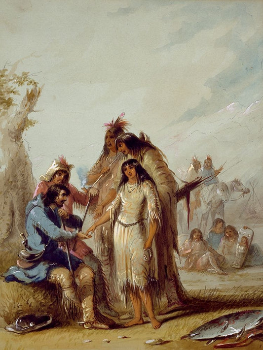 The Trappers Bride White Modern Wood Framed Art Print with Double Matting by Miller, Alfred Jacob