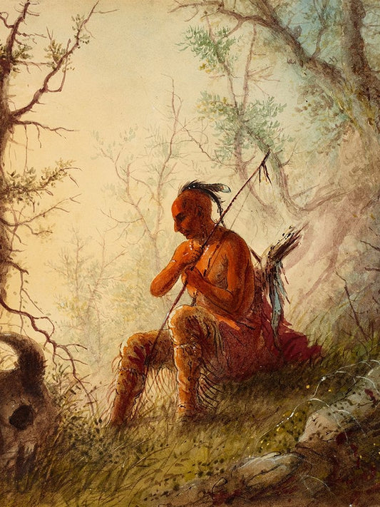 Sioux Indian at a Grave White Modern Wood Framed Art Print with Double Matting by Miller, Alfred Jacob
