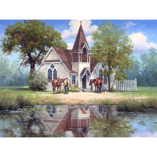 Reflections of a Country Church Black Modern Wood Framed Art Print with Double Matting by Sorenson, Jack