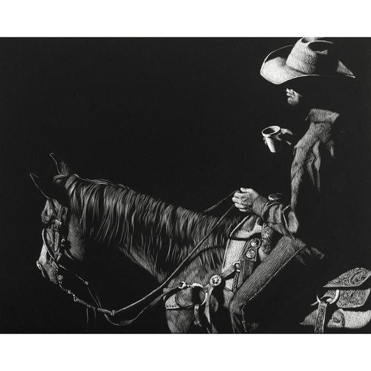 Cowboy Scratchboard II Black Modern Wood Framed Art Print with Double Matting by Chapman, Julie T.