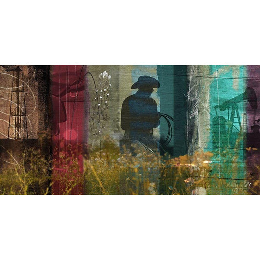 18x36 Cowboy Collage (ASH) Black Modern Wood Framed Art Print with Double Matting by Jasper, Sisa