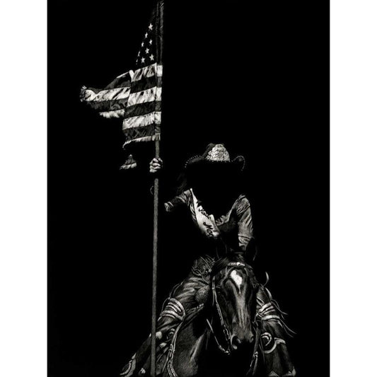 Scratchboard Rodeo VI Black Modern Wood Framed Art Print with Double Matting by Chapman, Julie T.