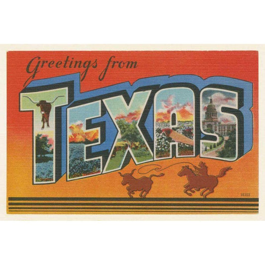 Greetings from Texas v2 Black Modern Wood Framed Art Print with Double Matting by Wild Apple Portfolio