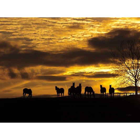 Horses at Sunset Black Modern Wood Framed Art Print with Double Matting by Aledanda