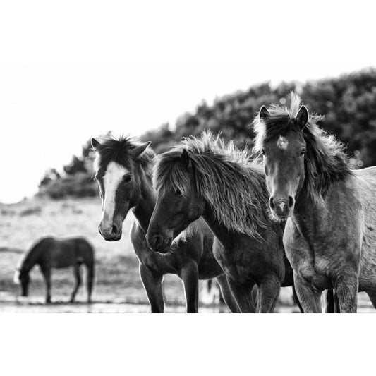 Horses Three Black Modern Wood Framed Art Print with Double Matting by Aledanda