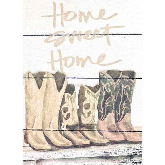 Home Sweet Home Boots in Shape Black Modern Wood Framed Art Print with Double Matting by Josefina