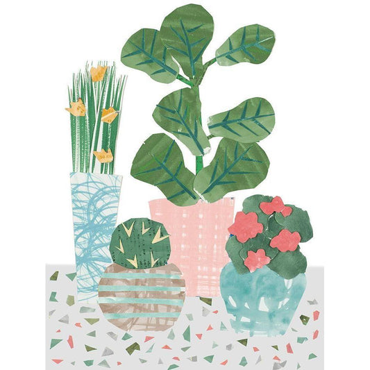 Blue and Brown Potted Succulents Black Modern Wood Framed Art Print with Double Matting by Loreth, Lanie