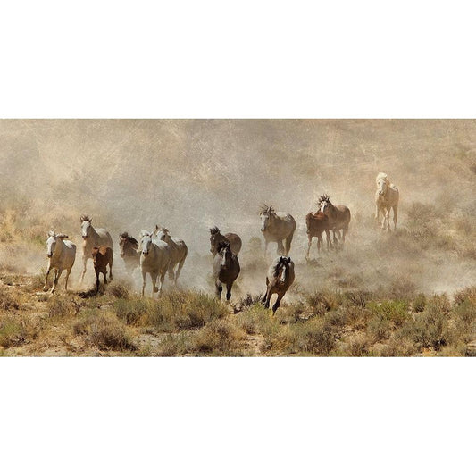 Horse Stampede Black Modern Wood Framed Art Print with Double Matting by Walker, Carol