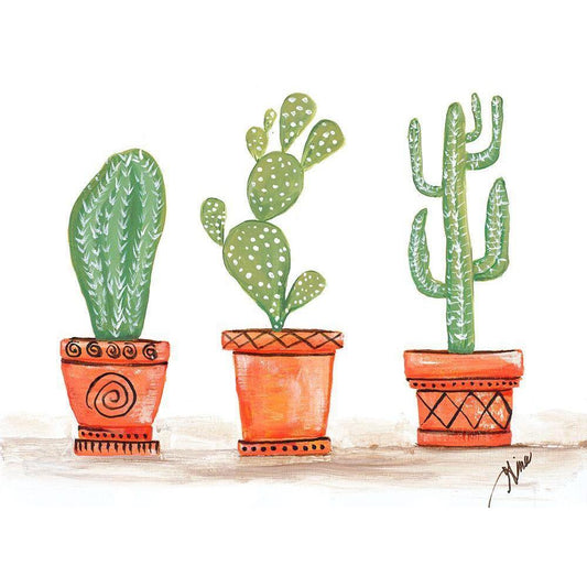 Cactus Trio Black Modern Wood Framed Art Print with Double Matting by Ritter, Gina