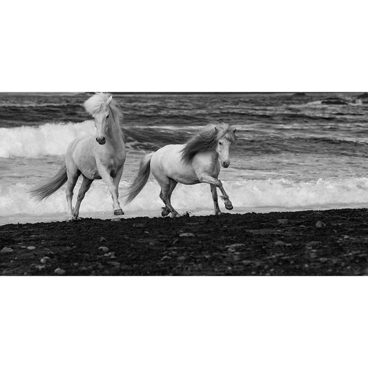 Beach Horses Black Modern Wood Framed Art Print with Double Matting by Walker, Carol