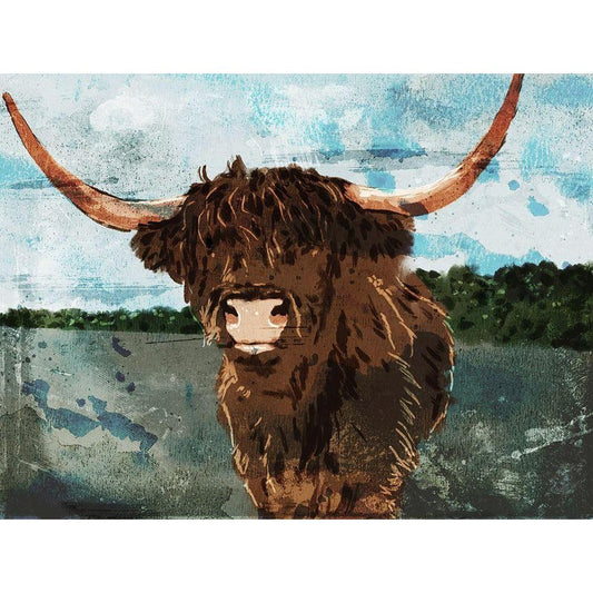 Hi Bull Black Modern Wood Framed Art Print with Double Matting by Villa, Milli