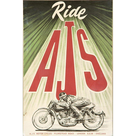 Ajs Motorcycle Black Modern Wood Framed Art Print with Double Matting by Vintage Apple Collection