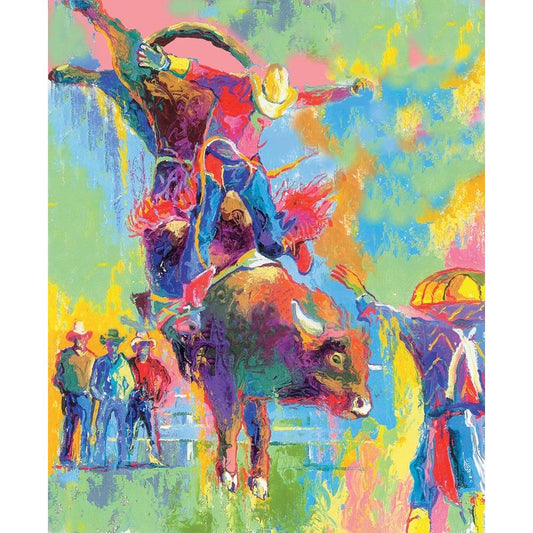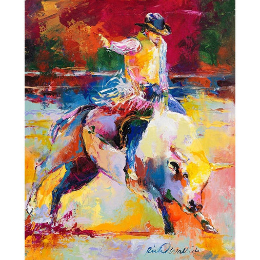 Bull Riding Black Modern Wood Framed Art Print with Double Matting by Wallich, Richard