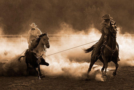 Roping on the Ranch ~ Sepia White Modern Wood Framed Art Print with Double Matting by Dawson, Robert