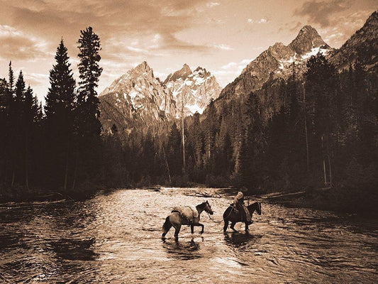 Teton Crossing White Modern Wood Framed Art Print with Double Matting by Dawson, Robert
