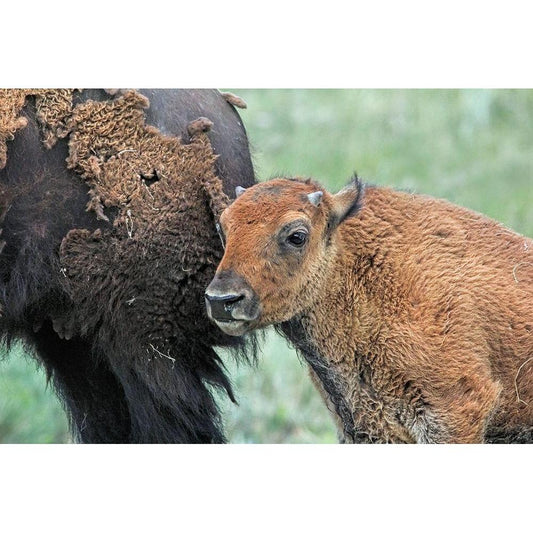 Buffalo Bison and Calf Black Modern Wood Framed Art Print with Double Matting by Schell, Jennie Marie