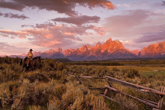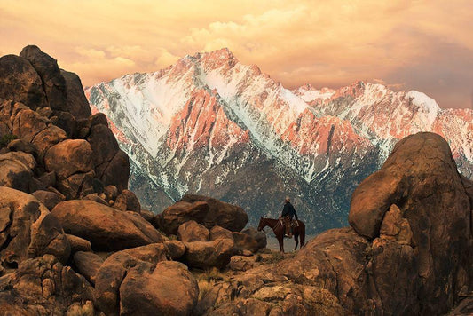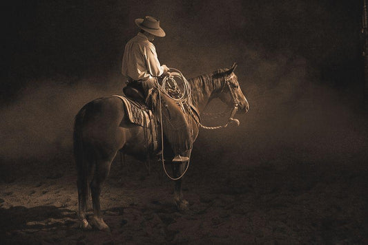 Range Rider III White Modern Wood Framed Art Print with Double Matting by Dawson, Robert