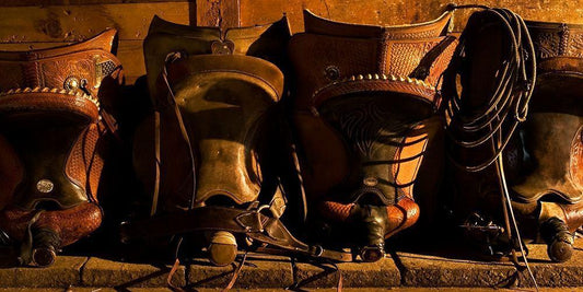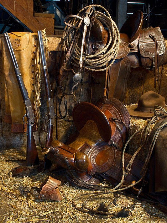 Ranchers Tack Room White Modern Wood Framed Art Print with Double Matting by Dawson, Robert