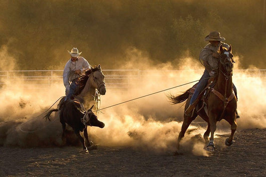 Ropin on the Ranch White Modern Wood Framed Art Print with Double Matting by Dawson, Robert