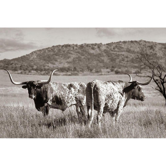 Longhorn cattle Sepia White Modern Wood Framed Art Print by Fitzharris, Tim