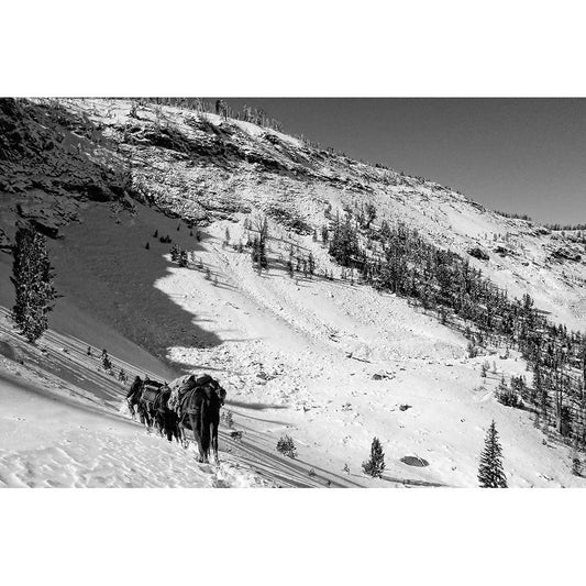 Winter Mule Packing White Modern Wood Framed Art Print by Vintage Photography