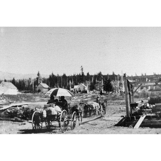 Wagon on Trail from Diamond Lake White Modern Wood Framed Art Print by Vintage Photography