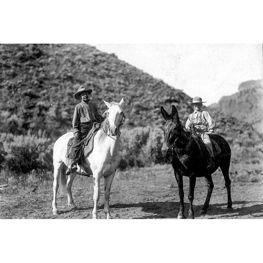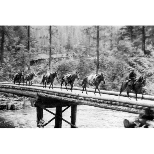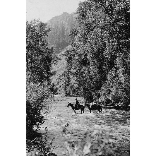 Ranger Crossing the Wenaha River White Modern Wood Framed Art Print by Vintage Photography