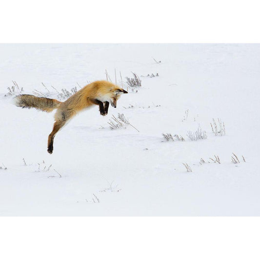 Hunting Fox Leaping, Hayden Valley, Yellowstone National Park White Modern Wood Framed Art Print by The Yellowstone Collection