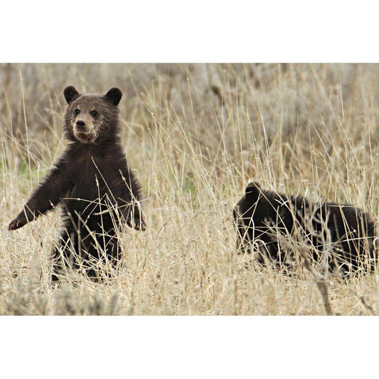 Grizzly Cubs, Yellowstone National Park White Modern Wood Framed Art Print by Peaco, Jim