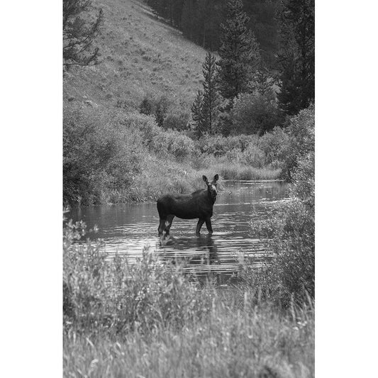 Cow Moose, Gallatin River, Yellowstone National Park White Modern Wood Framed Art Print by The Yellowstone Collection