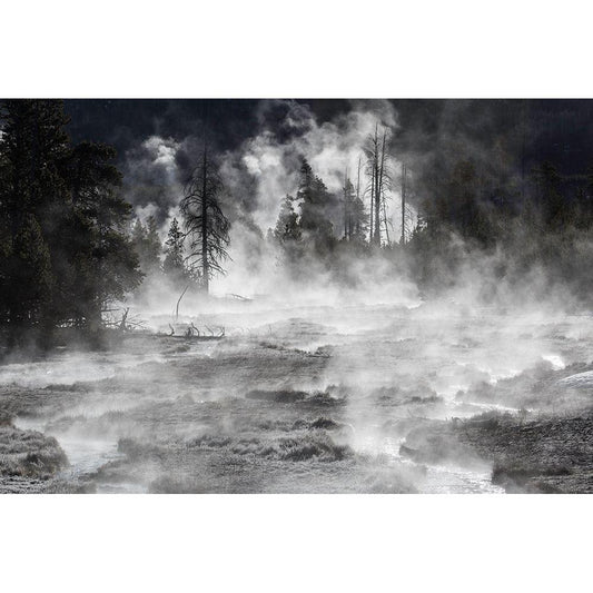Frost and Steam, Midway Geyser Basin, Yellowstone National Park White Modern Wood Framed Art Print by The Yellowstone Collection