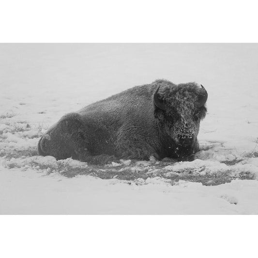 Frosty Bull Bison near Fishing Bridge, Yellowstone National Park White Modern Wood Framed Art Print by The Yellowstone Collection