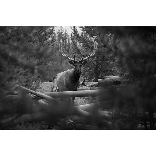 Bull Elk, Blacktail Deer Plateau, Yellowstone National Park White Modern Wood Framed Art Print by The Yellowstone Collection