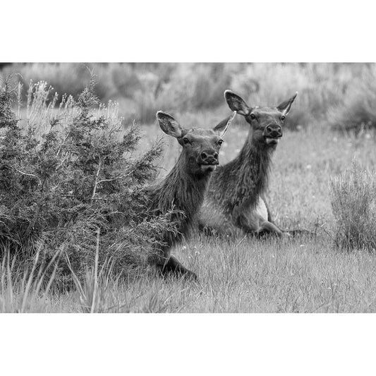 Cow and Calf Elk, Yellowstone National Park White Modern Wood Framed Art Print by Herbert, Neal