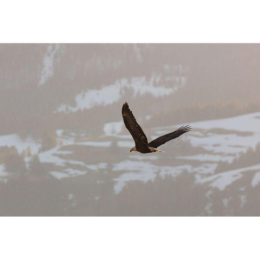 Bald Eagle over Soda Butte Creek, Yellowstone National Park White Modern Wood Framed Art Print by Frank, Jacob W.