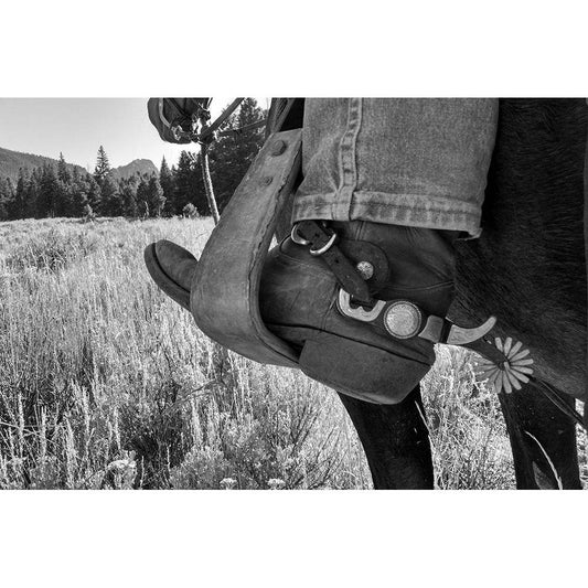 Boots in a stirrup White Modern Wood Framed Art Print by The Yellowstone Collection