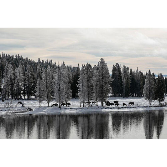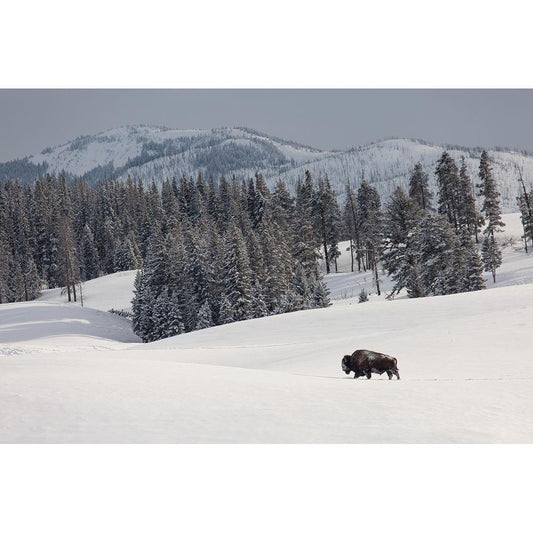Bison Snow Plough near Rainy Lake, Yellowstone National Park White Modern Wood Framed Art Print by Renkin, Diane