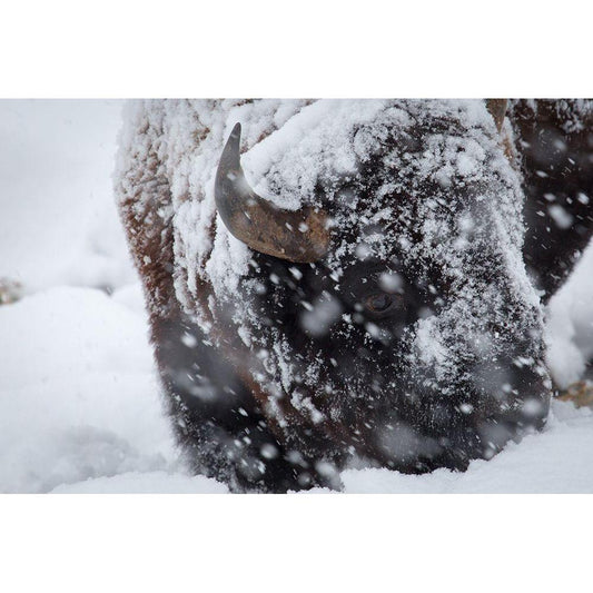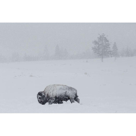 Bison in a snow storm Lamar Valley, Yellowstone National Park White Modern Wood Framed Art Print by Herbert, Neal